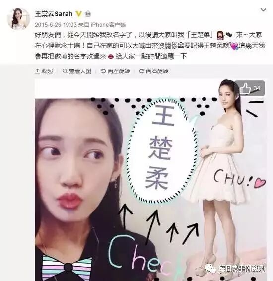 15年6月的时候,她宣布自己改名叫[王楚柔]↓