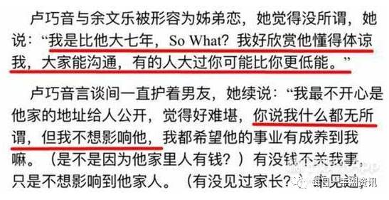 当时余文乐只是新人,而卢巧音已经颇有知名度,但在采访中卢巧音处处维护余文乐,表达对他的赞赏之情。