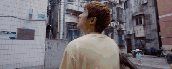 在影片的视觉风格上,来到广州之后也与前半部分形成了极其鲜明的对比。前半部分里的碧海蓝天和开阔视野荡然无存,取而代之的,是大量的夜景。昏黄的灯光和逼仄的空间下,身处异乡的少年,不得不四海为家。
