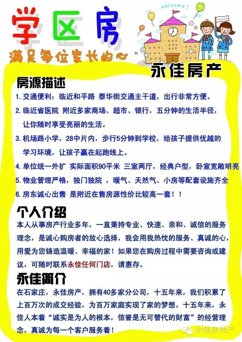 只要你努力发挥我们有足够的成长上升空间(分公司经理、区域经理)永佳房地产60余家门店,可在石家庄就门店近安排工作,介绍入职必有重谢!