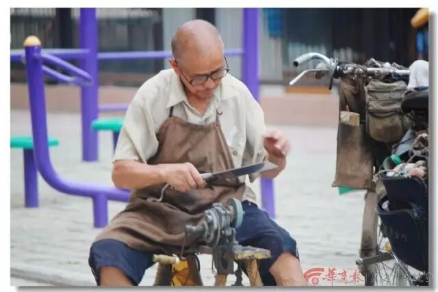 那时候,磨刀匠会挨家挨户的吆喝。现在啊,几乎见不到有人吆喝要磨刀了,毕竟大家都买得起磨刀石或新菜刀、剪刀了,都是自己在家磨,或是直接买把新的。