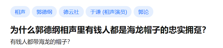 比如在郭德纲的相声宇宙里,海龙帽子是一个经常出现的道具。
