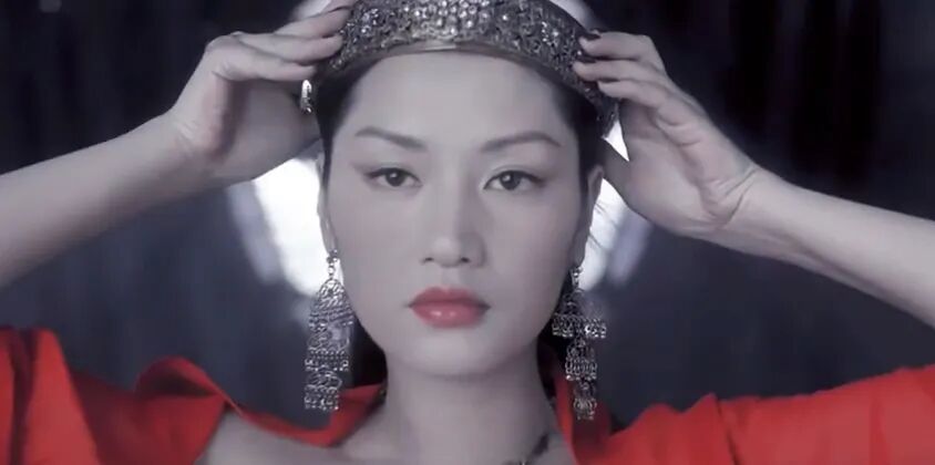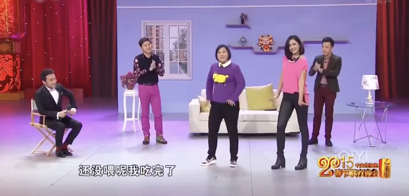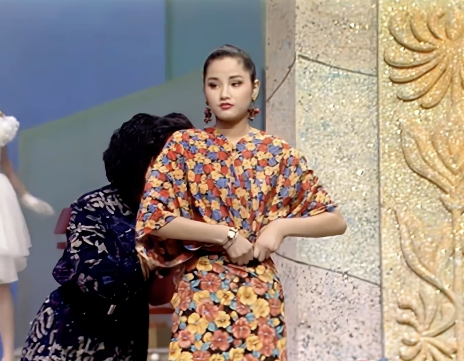 那一年她还上了春晚一个关于时装模特的歌舞表演,现场展示丝巾如何变成华美服饰。