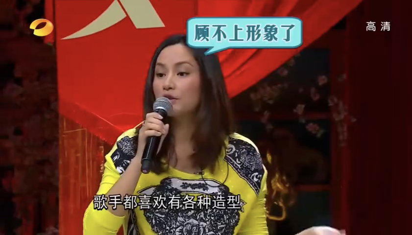 2012年,她出现在综艺节目《百变大咖秀》里。她原本是做评委,看着台上的选手模仿,她心里痒,自己也想玩一把,就上台了,最后拿到了冠军。那是一个好成绩,但她的粉丝却很难接受,连她身边的朋友也跟她说“你把我心中那个女神形象给毁了。”她心想,“毁不毁你的,我才不在乎,我自己是很尽情在里面玩了一把。”