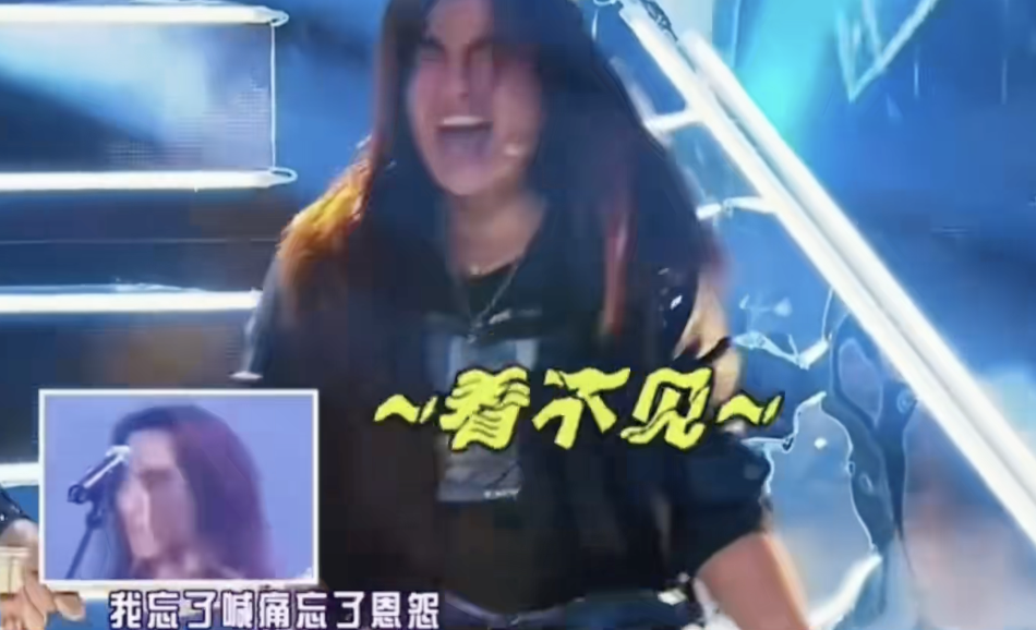 她一开始只是坐在评委席上安静点评的。评了几下后实在压不住燃烧的创作欲,马上自己下场当选手了。