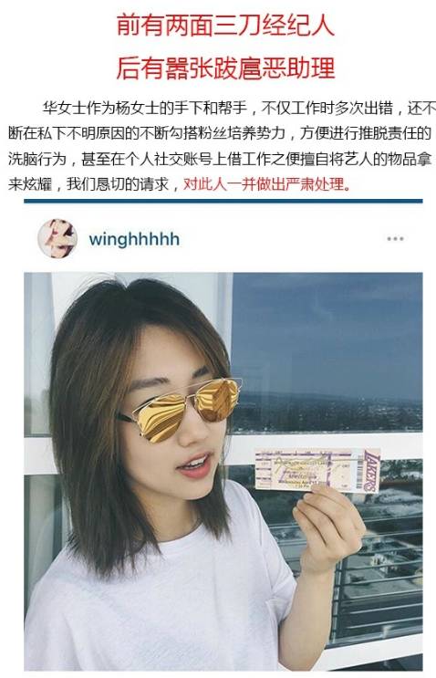 杨女士的私人微博经常发布一些负面情绪很严重的内容,比如什么好烦好累不想接电话。在工作期间不能控制得了自己的情绪,导致艺人和合作方都十分尴尬。
