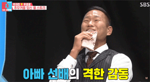 连“硬汉子”足球运动员郑大世都跟着喜极而泣,拿着手绢擦眼泪。
