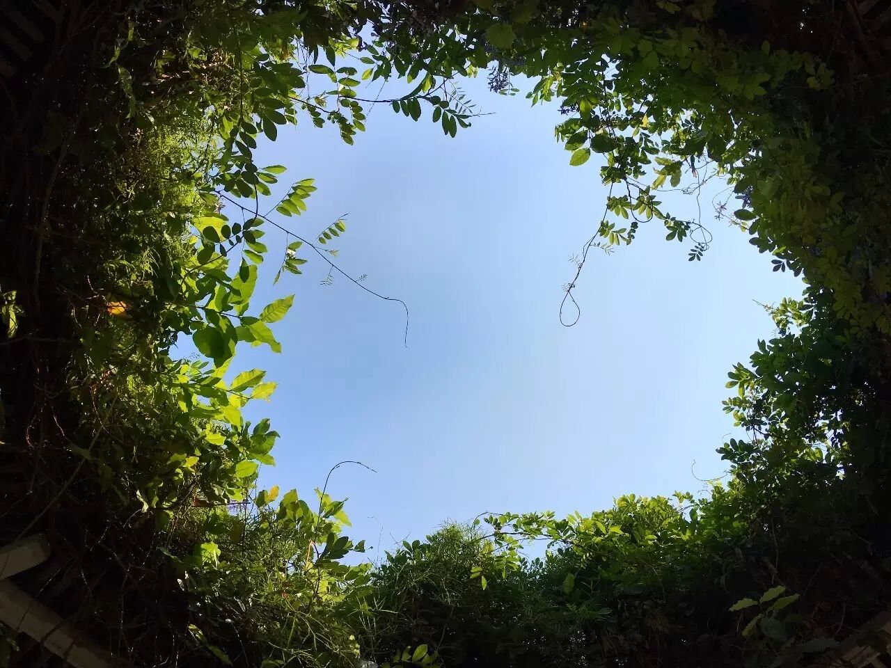 从下往上的拍摄,就如同这幅作品,透过植物向上看天空,如同好奇的孩童看着天井外的世界。