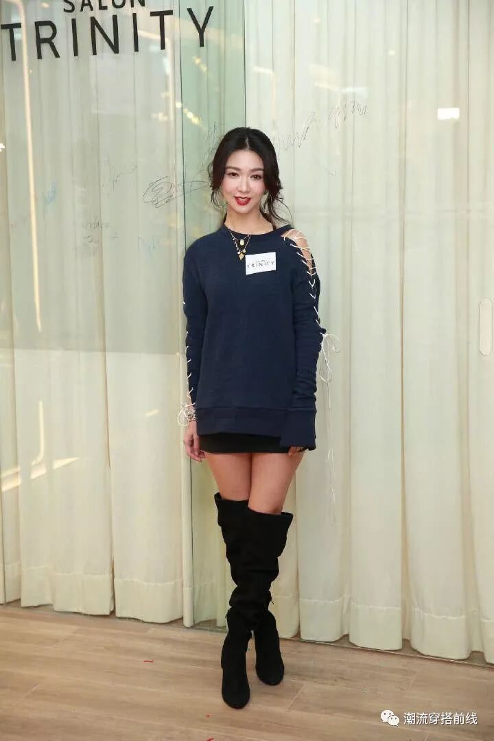 薛凯琪的这张脸蛋真是“浓妆艳抹总相宜”,用腮红把脸颊涂得如此红颜的薛凯琪就像是要去参加表演一样,嘴巴的口红也是涂得跟天上的太阳一样红。穿着一件黑色卫衣裙的薛凯琪还酷酷地交叉着双腿站着,特别有范。薛凯琪这件黑色卫衣裙的袖子两边是用白色丝线穿插着,看起来就是一条鱼的骨架一样,不仅十分引人瞩目,还使得她小露了香肩一把。