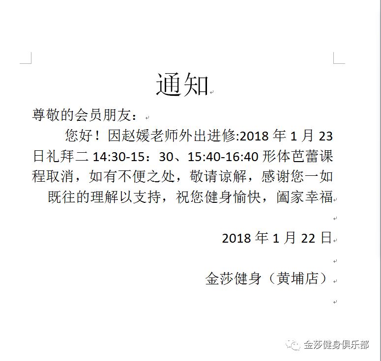 金莎健身(黄埔店)1月23日形体芭蕾舞课取消 金莎健身俱乐部 内地女星 2018-01-22 18:11:49 496 创作不易,用心坚持,欢迎请BaGua喝几杯爱心咖啡!打赏并支持本文 打赏并删除本文 亲爱的会员朋友们;金莎健身【黄埔店】全新升级,全新体验。金莎健身承诺会尽力的给各位会员一个更好的健身时间规划,感谢大家的理解与支持。金莎健身祝您健身愉快! 注:建议上瑜伽课的会员,请您提前十分钟或准时进场,如已上课,请勿入场,谢谢!微信公众号:金莎健身俱乐部黄埔店地址:黄埔区大沙地地铁5号线C出口金莎健身黄埔店咨询电话:020-22302122 创作不易,用心坚持,欢迎请BaGua喝几杯爱心咖啡!打赏并支持本文 打赏并删除本文 感谢您的支持鼓励,我会继续努力的!文章地址:用户邮箱:打赏金额:USDT 请输入数字点击”去打赏“,即可进行打赏支持本文章哦 金莎 About the Author 金莎健身俱乐部 功能介绍:新春送健康,金莎传真情.金莎健身新年巨惠,全民健身低至每月100元.亲--2015年是时候改变自己了! 官方认证:广州市黄埔区金莎健身馆 Related Posts 金莎健身(黄埔店)春节放假通知 2019-01-17 17:15:29 金莎健身(黄埔店)11月份最新课表 2018-10-30 20:46:26 金莎健身(黄埔店)10月9日-20日最新课表 2018-10-09 16:52:14 金莎健身(黄埔店)8月16日-8月31日最新课表 2018-08-15 21:09:07 金莎健身(黄埔店)8月将力推 维密体雕活力带 2018-07-29 16:34:06 发表评论