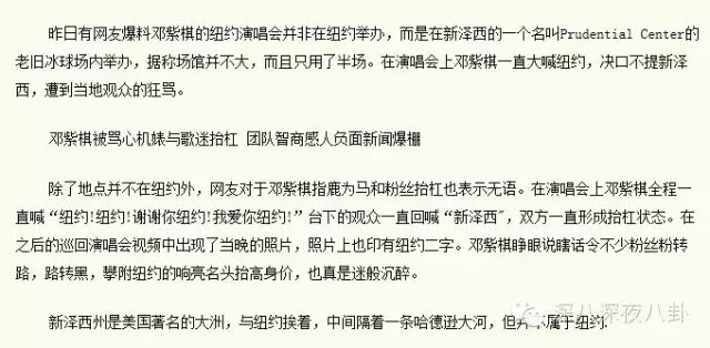 本来开世界巡回演唱会是件光彩的事,那次邓紫棋演唱会的地点是在新泽西州