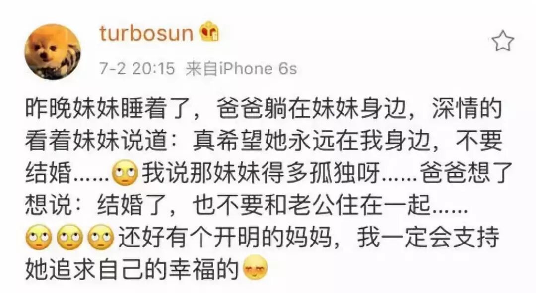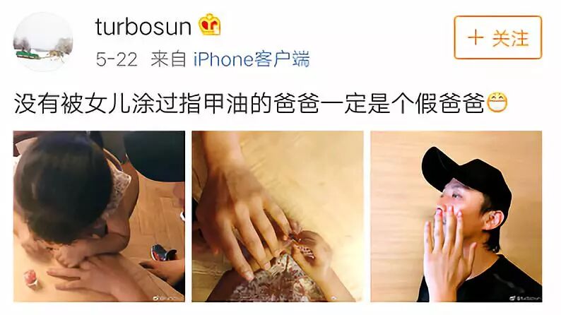 在邓超的微博上,满满的都是对孩子的爱,甘做女儿奴,享受亲子的甜蜜,把“父亲”角色作为人生至高的荣誉。