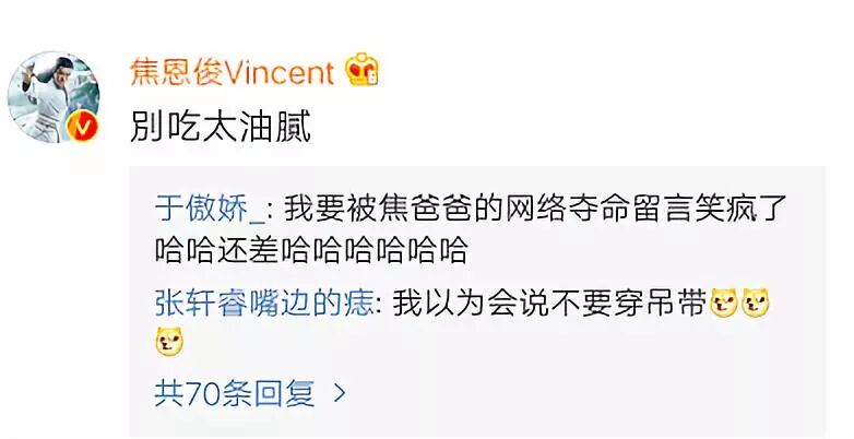 焦曼婷的每一条微博,几乎都有“老父亲”的评论,有网友说我是为了看焦恩俊才去关注的焦曼婷。