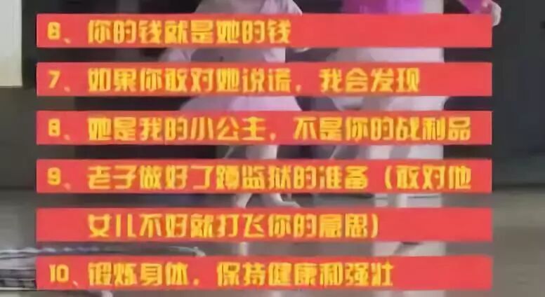 一同参加过《爸爸去哪儿》的刘畊宏和吴尊也是娱乐圈有名的女儿奴,吴尊还在节目里送给刘畊宏一件“国民岳父衫”,上面印着吴尊选女婿的十大标准: