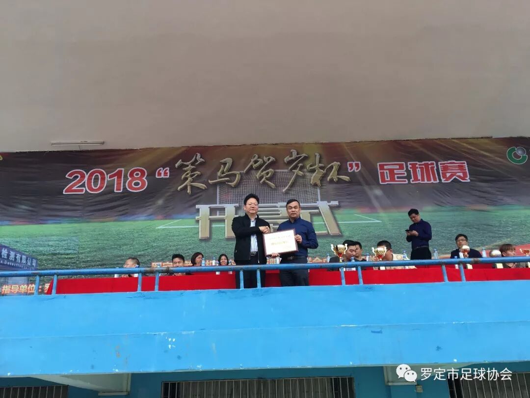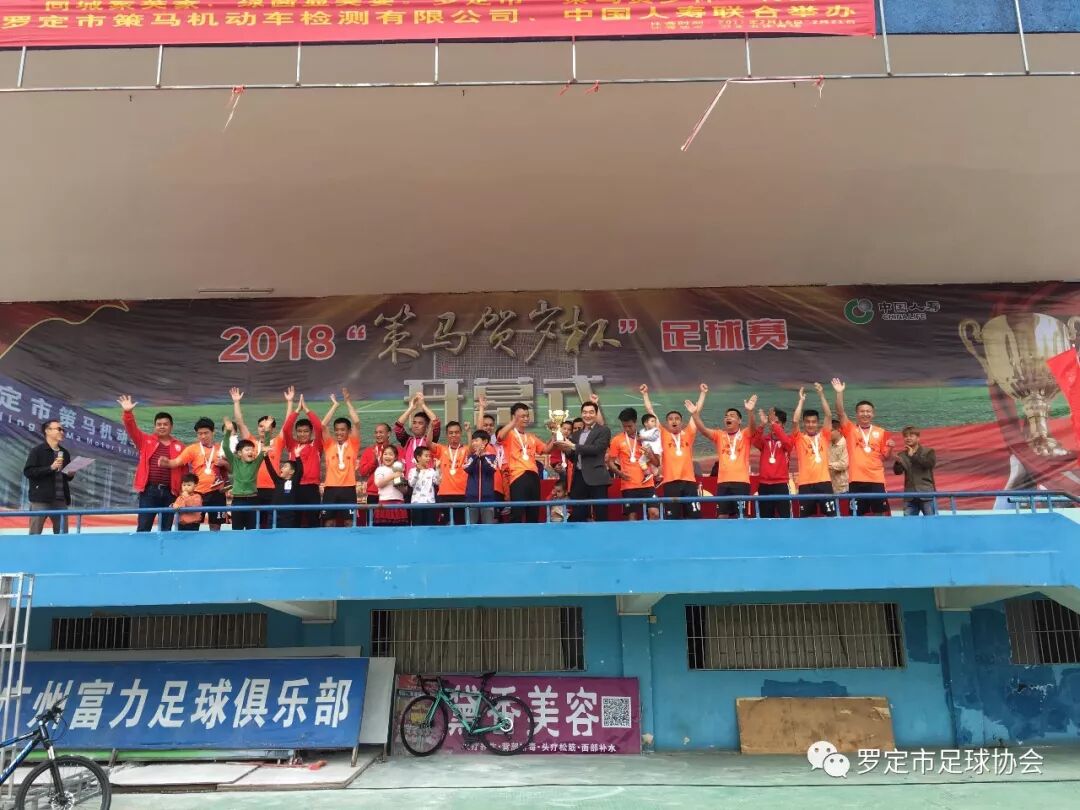 2018年2月21日,年初六下午,由罗定市足球协会举办,罗定市体育局指导,罗定市策马机动车检测有限公司、中国人寿保险有限公司共同赞助的2018罗定“”策马贺岁杯”七人制足球赛在罗定市体育场圆满落下帷幕。 罗定市副市长何文通、罗定市体育局局长邱立新、罗定市策马机动车检测有限公司总经理黄志锋、罗定市足球协会会长欧夏、副会长钟炽桥、秘书长陈灿生等领导嘉宾到场观看了决赛,并在闭幕式上为取得优异成绩的球队及优秀运动员颁奖。