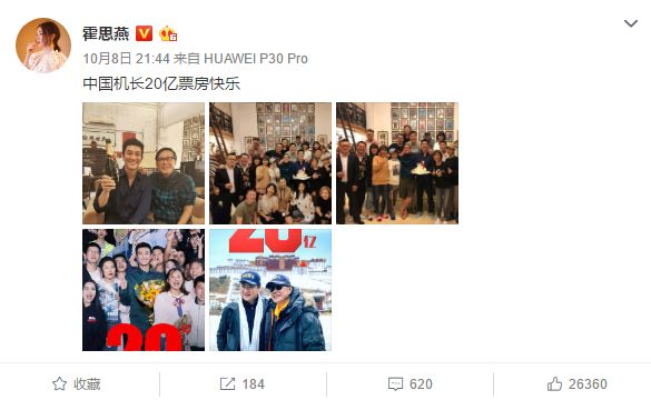这两天,《中国机长》破了20亿,她作为演员家属和首席粉丝,自然少不了又是一番庆祝。