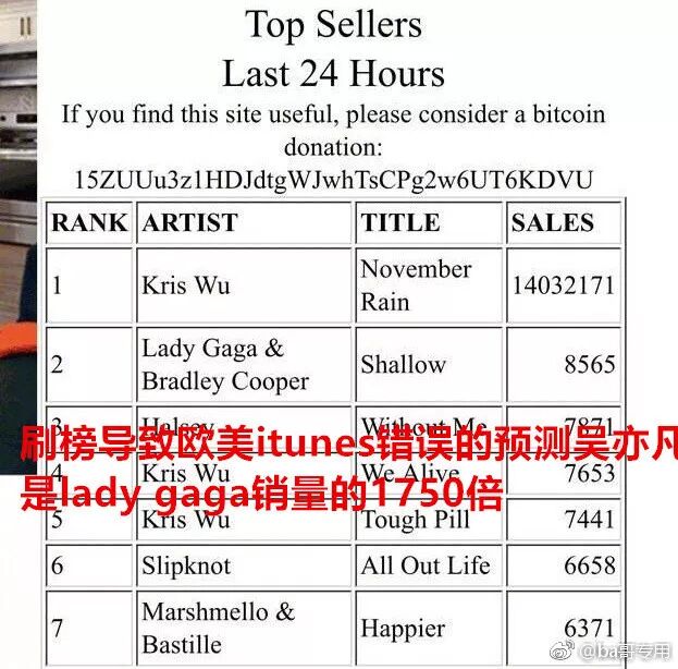 在此之前就有博主公布吴亦凡粉丝集中刷榜,导致系统预算吴亦凡的销量是lady gaga的1750倍。