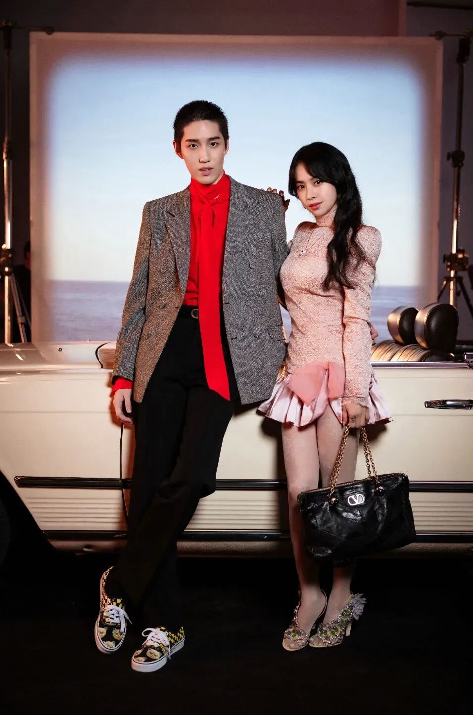 除了听好听的歌、看养眼的两位,磅礴当然也没有忘记自己的本职。眼尖的我发现了好几件 Valentino 2025 秋冬系列的秀款,且每一套都选得很讲究。
