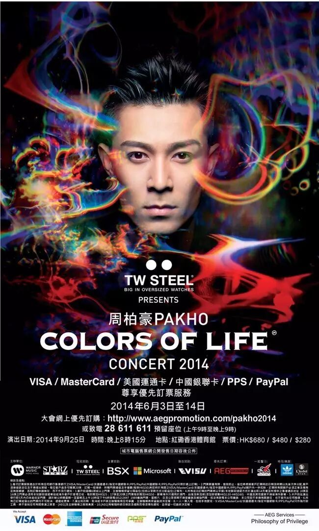 周柏豪2014年9月25日首踏红馆,举行一连两场的演唱会《Colors of Life》,为歌迷们带来「同天空」、「一事无成」、「Smiley Face」、「我的宣言」、「同行」等自2007年出道至今的好歌。是他人生中第一次在红馆开演唱会,几个月后发行了《COLORS OF LIFE 2014》CD,专辑共收录了33首曲