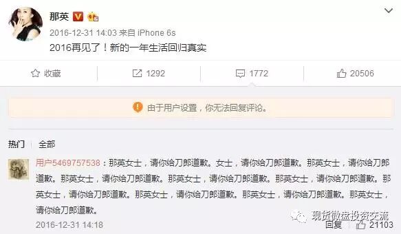 尽管那英关闭了微博,依然有不少网友给那英向刀郎道歉这句留言点赞。而那英和刀郎之前的恩怨,一直为很多网友热议的话题