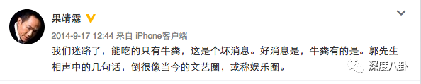 最后,用一张姚晨的一条微博结束这篇八卦。