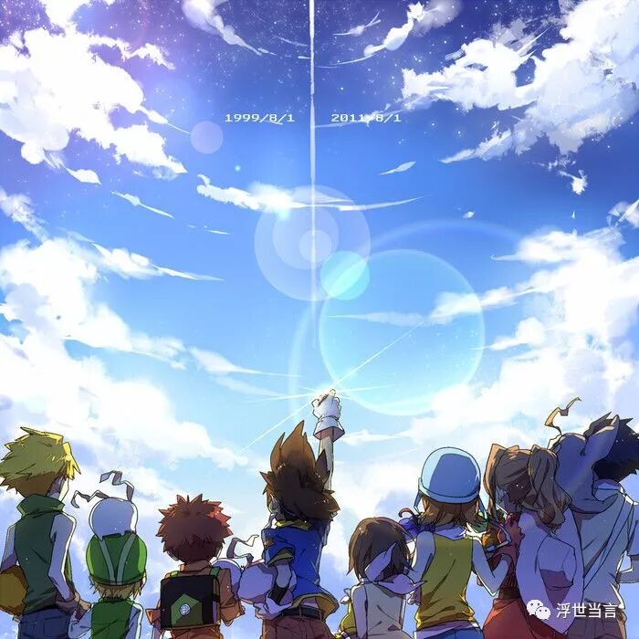 勇气、友情、爱心、知识、诚实、纯真、希望和光明,时间仿佛回到那年夏天,守在电视机前的我连主题曲的演绎时间都不放过,印象最深的画面是暴龙兽破冰而出,后面跟着其他孩子和数码兽们蜂拥跟随,这是一种朝气蓬勃与勇往直前。现在的我相信,在这群孩子后面,一定有光叔化成的蝴蝶在跟随着他们一起去冒险一起去守护着那个世界的梦想。