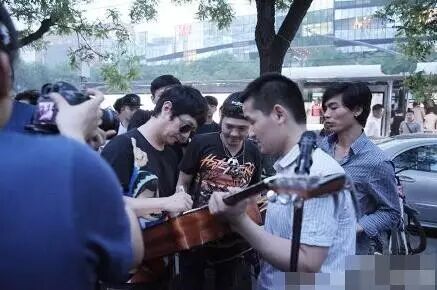 末了,郑钧还在卖唱歌手的吉他上签名,被巨星宠幸的吉他表示“好幸福”。