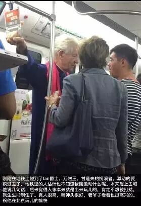 此次伊恩的北京游,不少小伙伴都有幸偶遇,微博上瞬间掀起“围观”潮,比如地铁上这位不敢上前打招呼的小伙子,即使远远看着也是一种幸福吧!