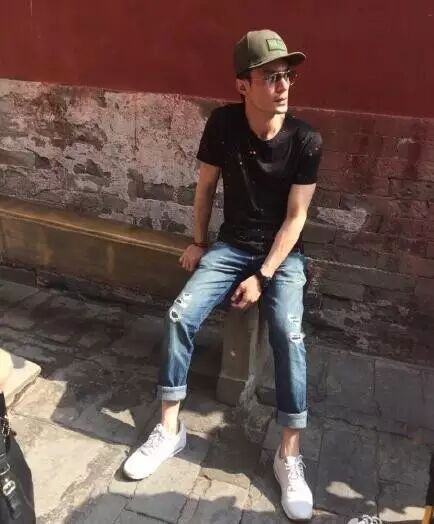 “老干部”当天穿了一条破洞牛仔裤,潮味十足。