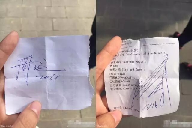 有游客拿到华哥和周公子的签名,虽然签名纸简陋了一些,但这龙飞凤舞的字迹还真有古代狂草的感觉呢!