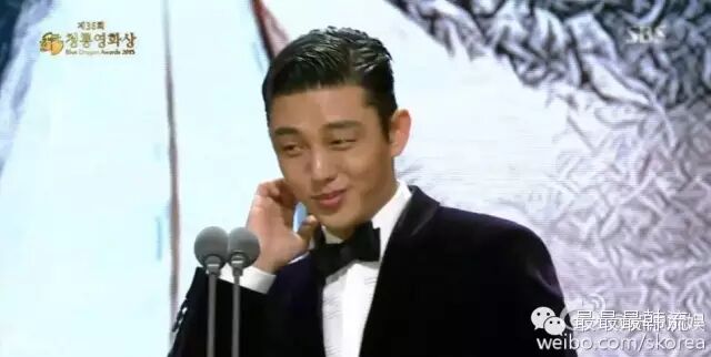 刘亚仁在台上获奖时还激动得一直摸耳朵