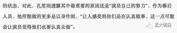 靠谱的剧组并不怕用什么样的演员,关键是有能力控制局面。孔笙说过,好的剧组要让演员看得见你是在认真做事的,他身为一份子也知道不敢怠慢。