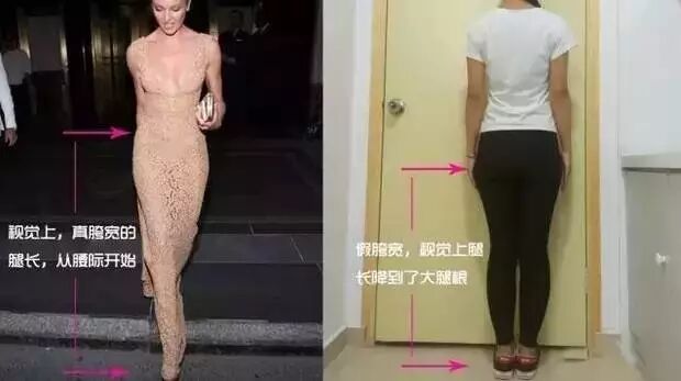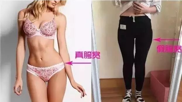 假胯宽在视觉上会使腿的长度从大腿根开始,视觉上至少短15公分!大长腿瞬间变成小短腿,而且还会让大腿显得很粗壮