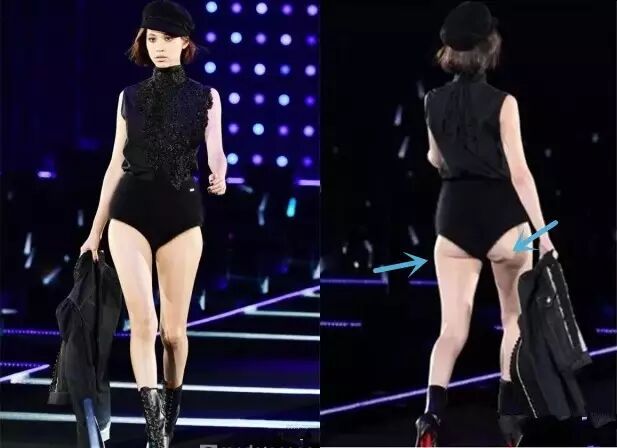 就像张天爱,因为骨盆前倾,严重影响腰围和侧腰线条