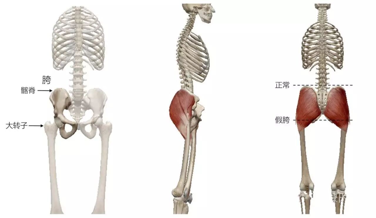 臀腿肌肉力量平衡失调,核心不能保持平衡,导致走路时出现拧胯,使股骨大转子外凸,导致假胯宽