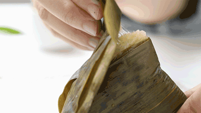 再撕开透亮的粽叶