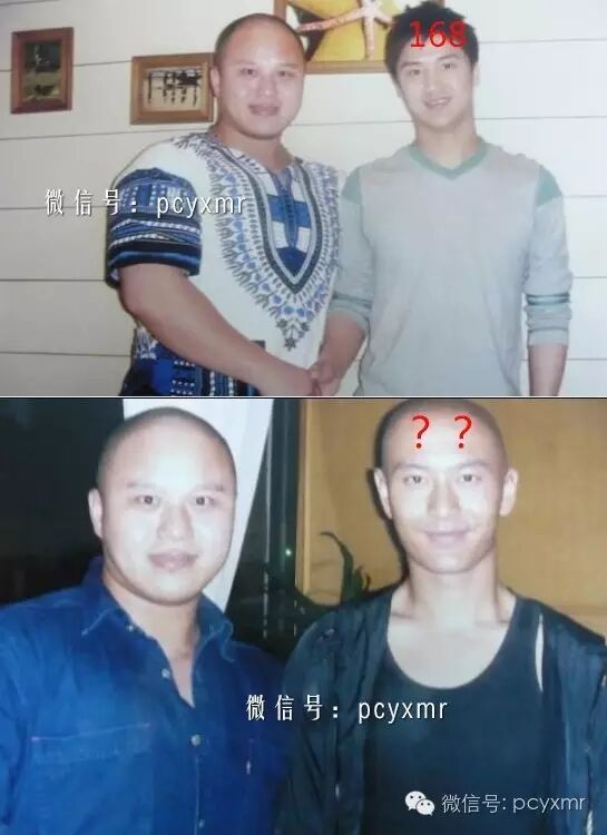 来看看两人的合影,基本差不多高。在黄海波没有站很直的情况下,下巴还比教主高了约2cm。