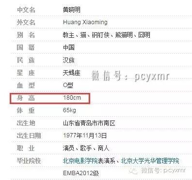 教主的身高,绝对位列谜之榜首!比他的下巴更能吸引樱桃妹的关注~昂,所以咱们第一个就来扒扒他。先来看看官方数据,男明星身高重要分水岭180CM(180无辜躺枪……)