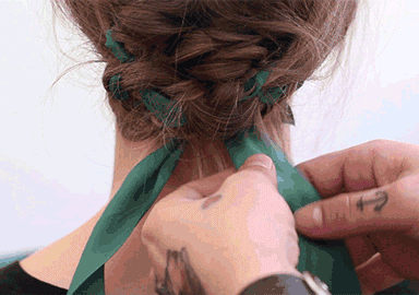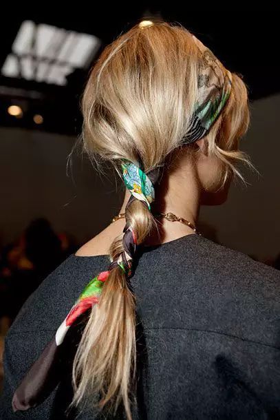 也可以丝巾代替,无论是马尾还是丸子头,只要搭配上发带,真的是一秒变名媛。