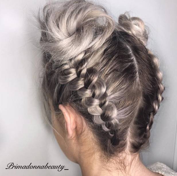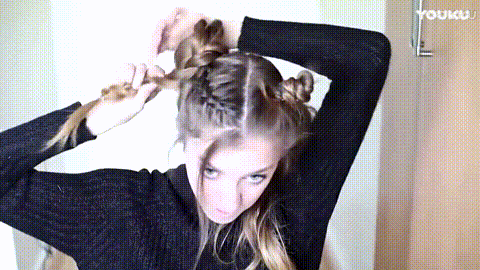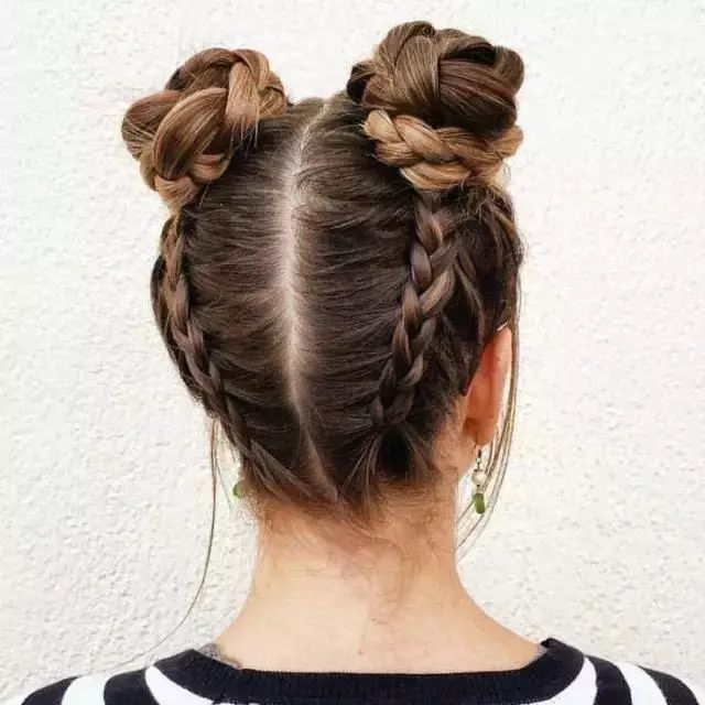 D爷个人是很喜欢这种发型的,编发和今年流行的哪吒头结合,夏天看起来很清爽,又炒鸡可爱。如果你觉得太繁杂了,也可以只编丸子头的部分。
