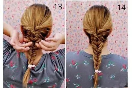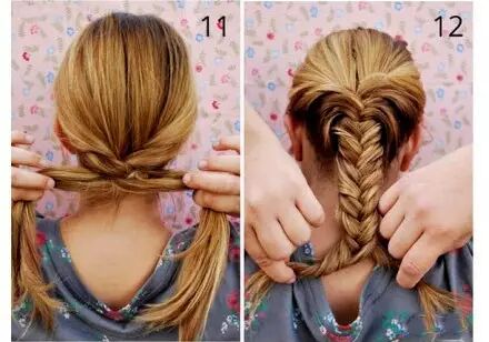 相比于上面几种,鱼骨辫比较常见,你可以编成这种低的鱼骨辫。