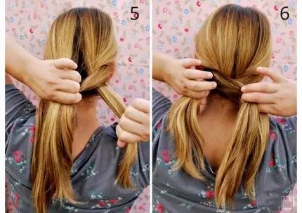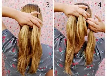 Step 6:最后将头发向外拉松,用皮筋绑住发尾,这样就完成啦。