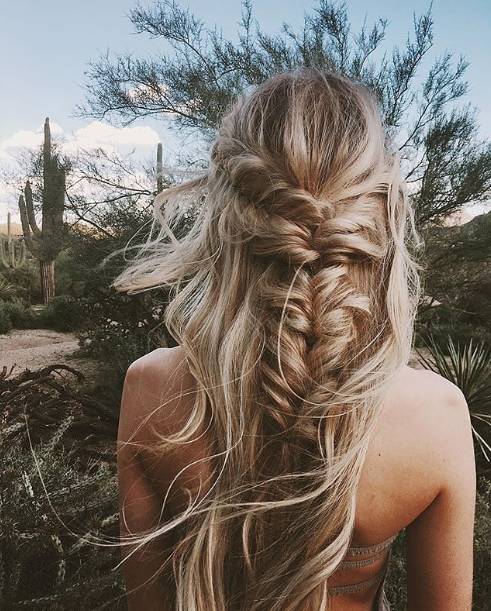 或者是这种从两边耳后分别取两撮头发编出来的鱼骨辫看起来就很小仙女,不过,夏天会有点热,适合秋冬。