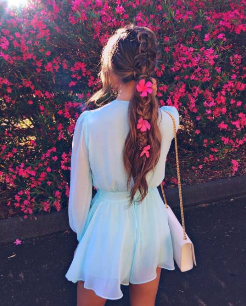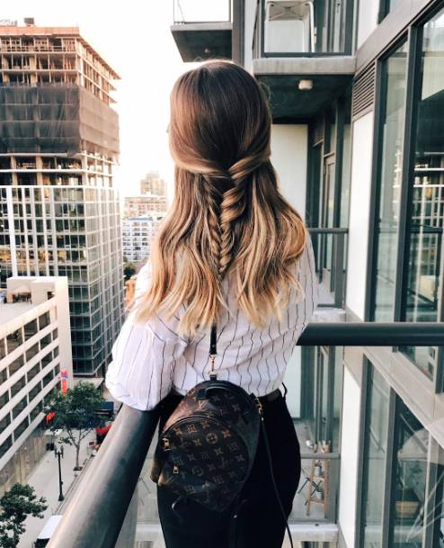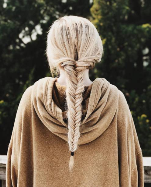 这款法式双辫看起来和去年流行的拳击手辫编发差不多,发尾继续编的话就是这样,洋溢着满屏的青春感。