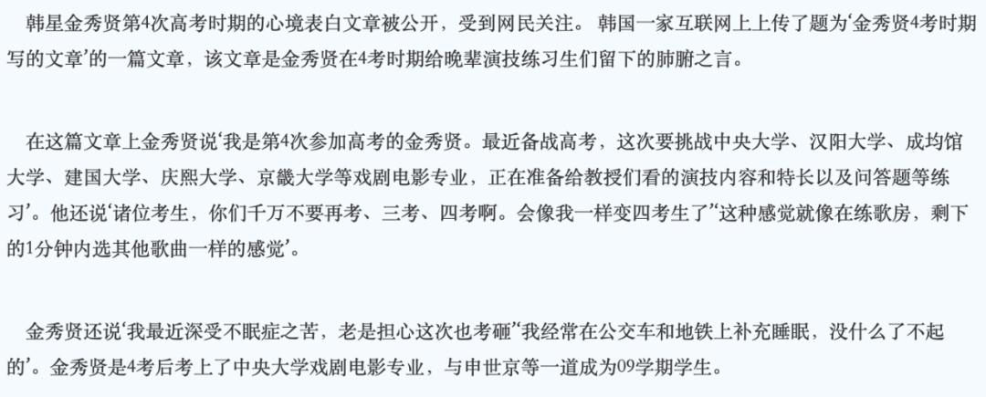 高三时候的班主任还记得他带着剧本来来去去进行发生发声练习的模样,为了上韩国中央大学戏剧电影系#相当于中传#,金秀贤甚至考了四次#所以这两天高考的孩子真的一次考试不说明什么#▼▼▼