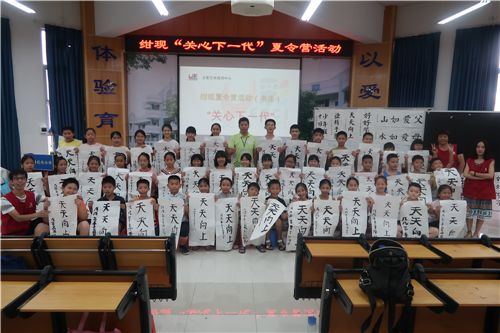 7月30日,绀现村党委联合绀现村委会、团支部、妇联、关心下一代工作委员会与绀现妇女儿童之家,在梁钊林纪念小学开展了为期一周的“关心下一代”书法培训班夏令营活动。