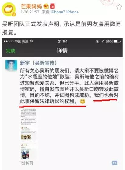 “前男友动机不纯,将保留法律诉讼的权利。”