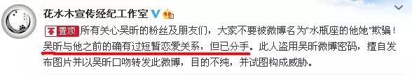 吴昕与该男子之前的确有过短暂恋爱关系,但已分手,这条秒删博是其不满分手一手导演策划出来的