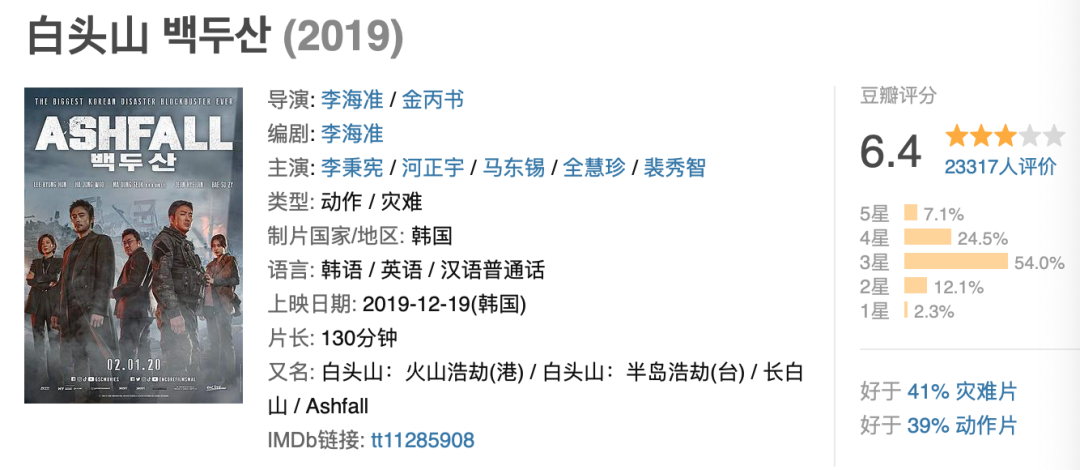 《白头山》河正宇、李秉宪共同出演的灾难动作大片,也是在去年韩国大卖的一部影片。