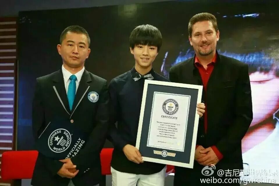吉尼斯世界纪录拥有者,中国十大网络影响力人物,五四优秀青年,全国学联代表,百度沸点人气尖叫榜冠军,蝉联14、15年明星权力人气榜冠军,两岸男神完美男神和年度人气大赏双料冠军,90后十大影响力人物榜首,登上福布斯中国名人榜,公益劝募影响力位列明星榜前列且排名在组合之前队内第一,唯一一个两进人民大会堂的全国学联代表、联合学生会副主席,娱乐圈首个话题破亿明星,个人版《样》问鼎2015十大金曲之冠,全国绿植形象大使……这只是王俊凯成绩的一部分,奇迹仍在发生,我们共同见证!